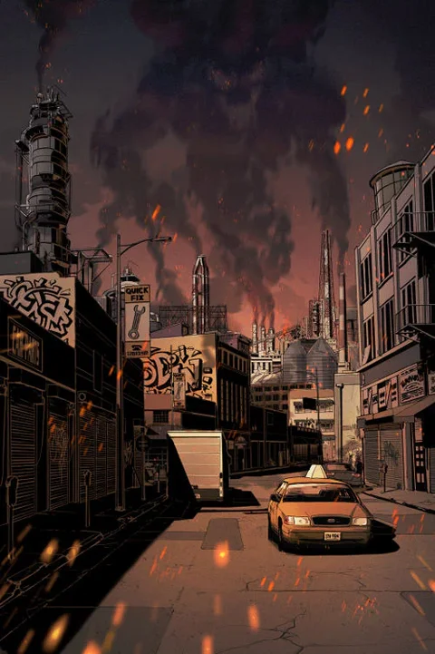 City of Mist spielt in einer dunkle und von Verbrechen heimgesuchte und archetypische Metropole, mit den typischen Gassen, dreckigen Hinterhöfen und modernen Hochhäusern auf der anderen Seite. Deine Charaktere, ihre Lieben und ihre Feinde leben alle in der Stadt, und kein "Außerhalb" erregt die Aufmerksamkeit.